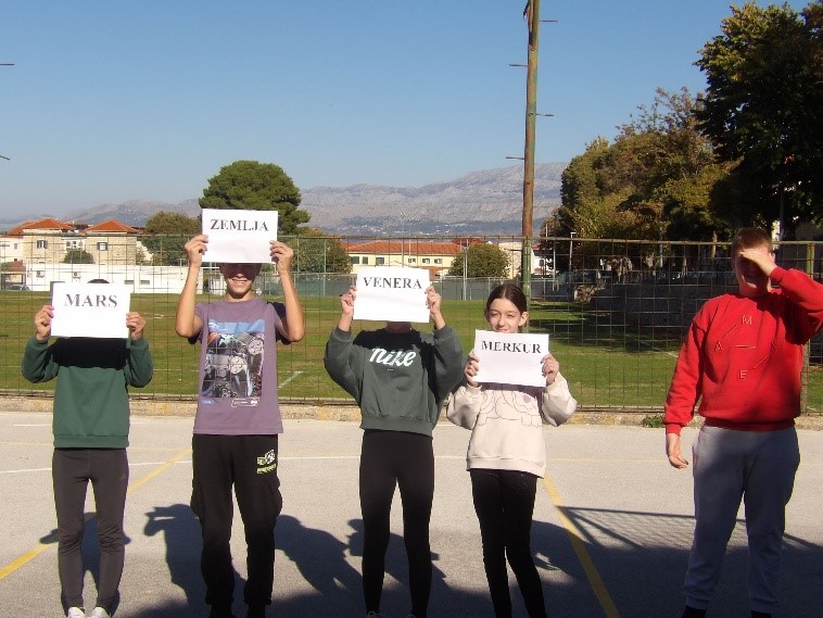 Učenici su glumili planete (više učenika – veći planet) osim našeg Marina Šantića koji nam je bio Sunce.