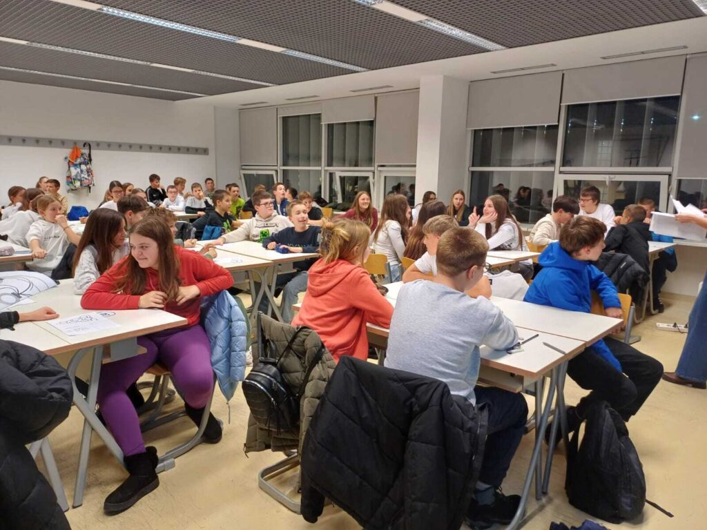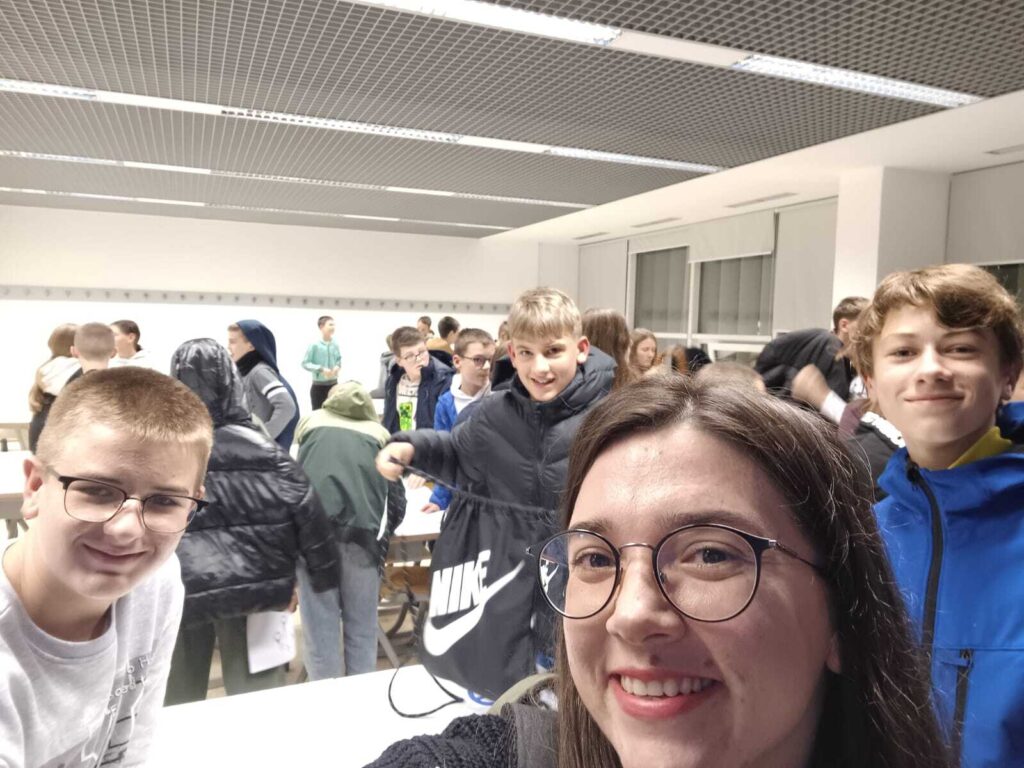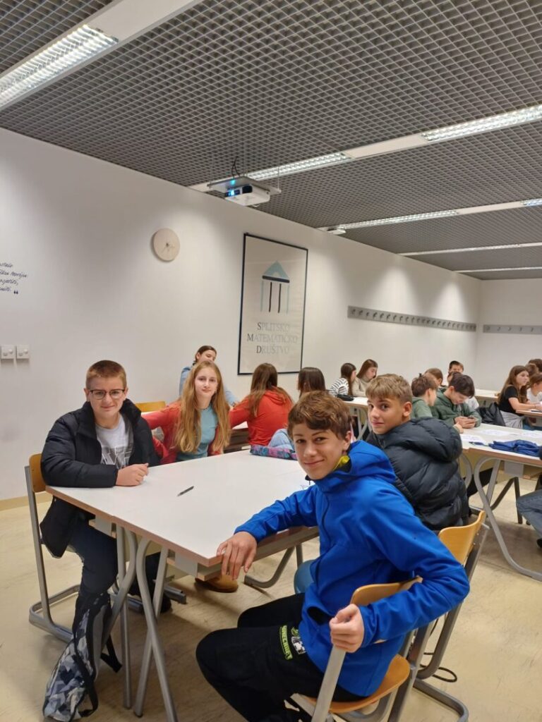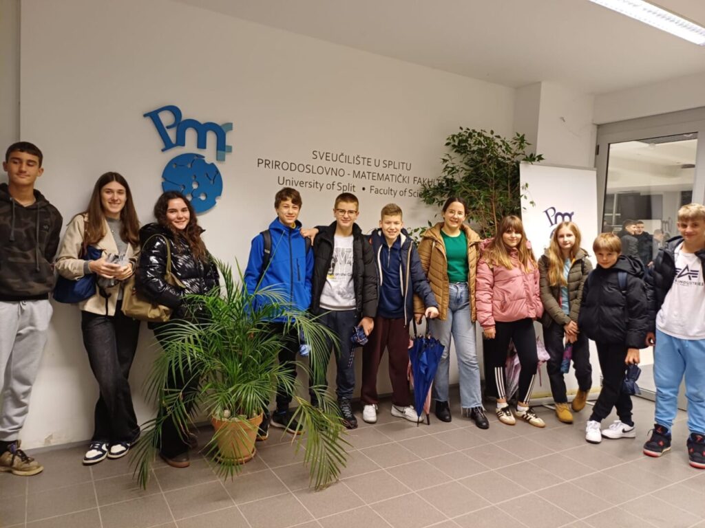 U četvrtak, 4.prosinca 2025. učenici naše škole koji su polaznici Dodatne nastave matematike od 6. do 8.razreda sudjelovali su na Večeri matematike koja se održala na splitskom PMF-u s početkom u 17:15. Kiša koja je padala cijeli dan nije nas obeshrabrila niti nam pomrsila planove. Prije samog dolaska na PMF učenici su posjetili Primu 3, Sveučilišnu knjižnicu u Splitu, Fakultet elektrotehnike, strojarstva i brodogradnje (FESB) i studentsku menzu kako bi malo doživjeli što znači biti student. Ispred zgrade triju fakulteta taman se odvijao program Adventa na Kampusu pa smo neposredno prije ulaska na PMF osjetili i božićnu atmosferu. U pratnji svoje učiteljice matematike učenici su preko 2 sata uživali u matematičkim zadacima i igrama.