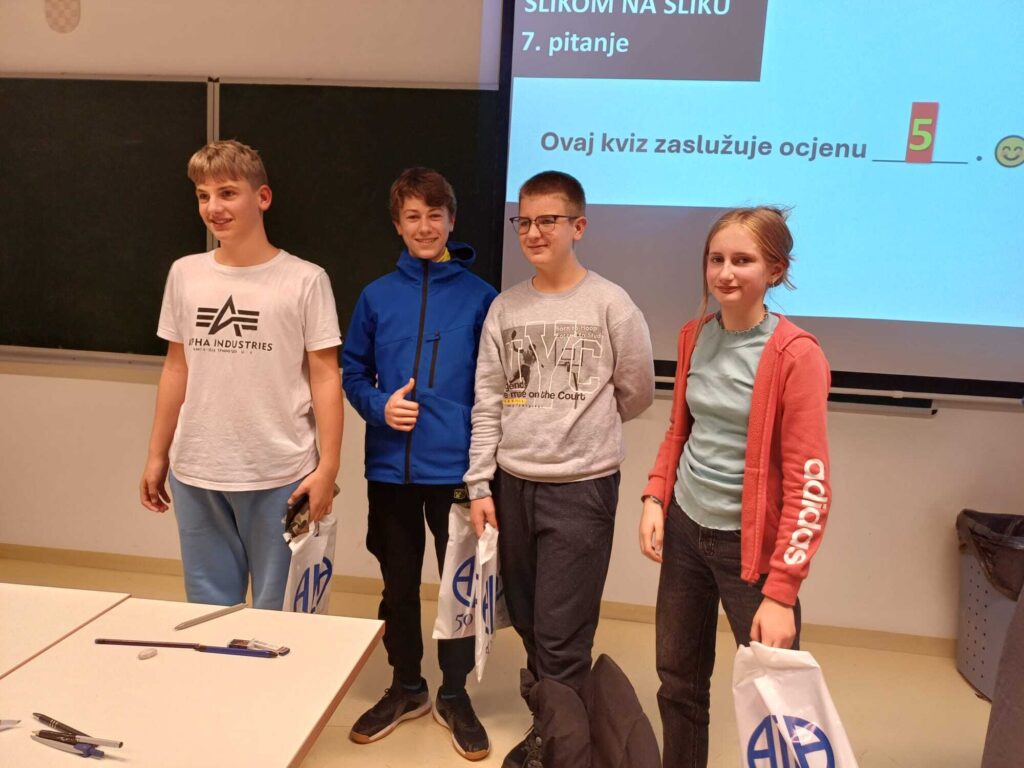 Posebno smo ponosni na ekipu koju su činili Gita Martinović (6.r), Franko Mihovilović (6.r), Nino Kovačević (7.r) i Mateo Škarić (6.r), a koja je osvojila 3.mjesto na kvizu matematičkog znanja i osvojila nagrade.